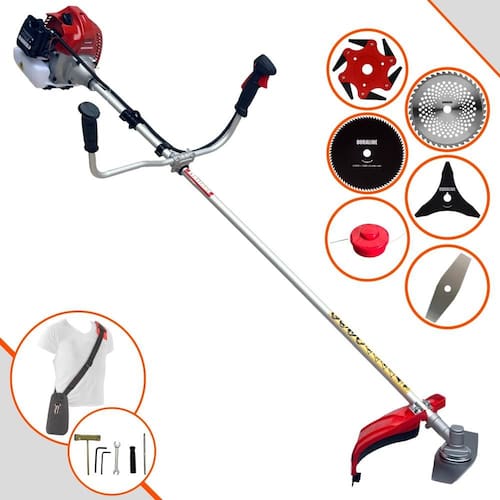 Com guidão ergonômico lateral, permite um alcance amplo e maior mobilidade, capaz de aumentar a produtividade diária. Possui motor 2 tempos á gasolina, de 62 Cilindradas; 3HP de potência que proporcionam maior performance e economia na operação. Seu conjunto de acessórios inclui kit de ferramentas, cinto de suporte almofadado, carretel de nylon e lâmina de corte 3 pontas.