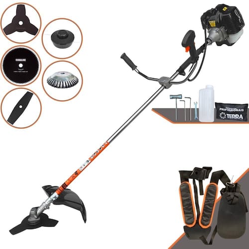 Roçadeira Lateral Terra GRH-430 Black À Gasolina 2 Tempos 43cc 1,7HP+ Faca 2 Pontas 330mm 2,7mm + Faca 80 Dentes 255mm 1,5mm + Escova Rotativa 200mm 38 Cerdas