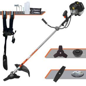 Roçadeira Lateral Terra GRH-430 Black À Gasolina 2 Tempos 43cc 1,7HP + Faca 2 Pontas 330mm 2,7mm + Escova Rotativa 200mm 38 Cerdas