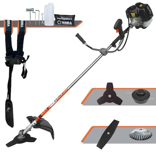 Roçadeira Multifuncional GRH430 Terra À Gasolina 43cc 1,7HP Alta Rotação Com Carretel Nylon + Faca 2 Pontas + Faca 3 Pontas + Escova de Aço 38 Cerdas