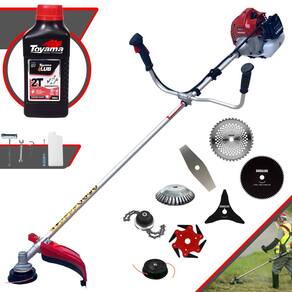 Roçadeira À Gasolina Kawashima BCJ 431L 42,7CC 1,7HP 2T + Faca 3 Pontas + Faca 6 Pontas + Faca 40 Dentes + Faca 80 Dentes + Trimmer + Escova 38 Cerdas + Óleo Toyama FG50 500ml