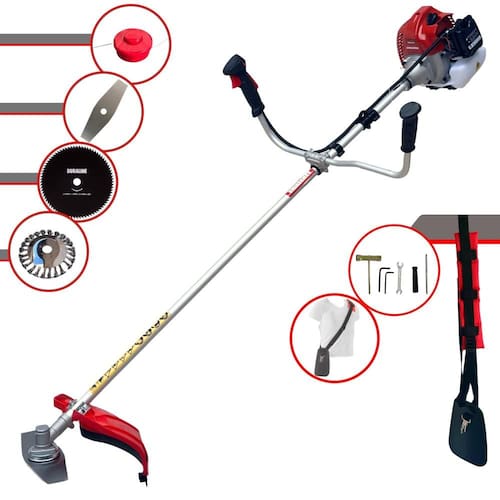 Com guidão ergonômico lateral, permite um alcance amplo e maior mobilidade, capaz de aumentar a produtividade diária. Possui motor 2 tempos á gasolina, de 62 Cilindradas; 3HP de potência que proporcionam maior performance e economia na operação.Seu conjunto de acessórios inclui kit de ferramentas, cinto de suporte almofadado, carretel de nylon e lâmina de corte 3 pontas.