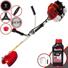 Roçadeira Lateral Kawashima KW43-L À Gasolina 2T 43cc 1,7HP Com Lâmina 3 Pontas + Faca 2 Pontas 330mm + Faca 40 Dentes 255mm + Faca 80 Dentes 255mm + Óleo Toyama LUB FG50 500ml 2T