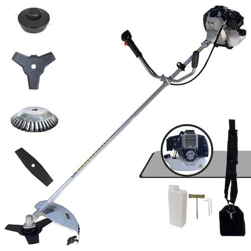 Com guidão ergonômico lateral, permite um alcance amplo e maior mobilidade, capaz de aumentar a produtividade diária. Possui motor 2 tempos á gasolina, de 42,7 Cilindradas, 12.000 de rotação 1,7HP de potência que proporcionam maior performance e economia na operação.Seu conjunto de acessórios inclui kit de ferramentas, cinto de suporte almofadado, carretel de nylon e lâmina de corte 3 pontas.