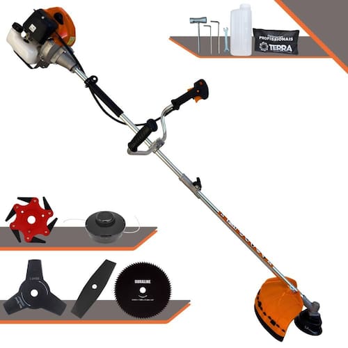 Roçadeira Lateral Terra GRHB-430 Bipartida À Gasolina 2 Tempos 43cc 1,7HP + Faca 3 Pontas + Faca 80 Pontas + Faca 6 Pontas 250mm