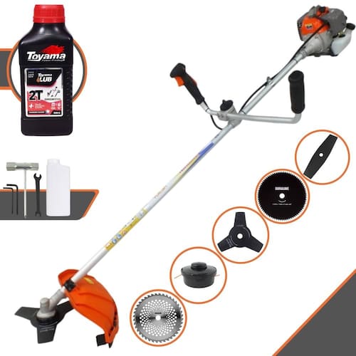 Roçadeira Lateral Vulcan VR330P À Gasolina 2 Tempos 33cc 1,2HP+ Faca 2 Pontas 330mm + Faca 40 Dentes 255mm + Faca 80 Dentes 255mm + Óleo Toyama FG50 500ml