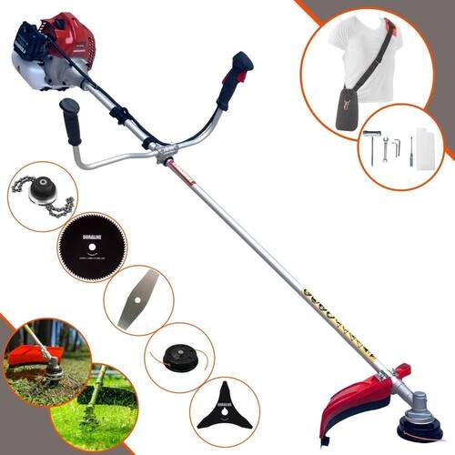 Com guidão ergonômico lateral, permite um alcance amplo e maior mobilidade, capaz de aumentar a produtividade diária. Possui motor 2 tempos á gasolina, de 52 Cilindradas; 2,5HP de potência que proporcionam maior performance e economia na operação. Seu conjunto de acessórios inclui kit de ferramentas, cinto de suporte almofadado, carretel de nylon e lâmina de corte 3 pontas.