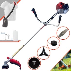 Com guidão ergonômico lateral, permite um alcance amplo e maior mobilidade, capaz de aumentar a produtividade diária. Possui motor 2 tempos á gasolina, de 43 Cilindradas; 1,7HP de potência que proporcionam maior performance e economia na operação. Seu conjunto de acessórios inclui kit de ferramentas, cinto de suporte almofadado, carretel de nylon e lâmina de corte 3 pontas.