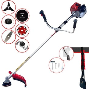 Com guidão ergonômico lateral, permite um alcance amplo e maior mobilidade, capaz de aumentar a produtividade diária. Possui motor 2 tempos á gasolina, de 43 Cilindradas; 1,7HP de potência que proporcionam maior performance e economia na operação. Seu conjunto de acessórios inclui kit de ferramentas, cinto de suporte almofadado, carretel de nylon e lâmina de corte 3 pontas.