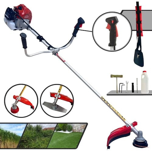 Com guidão ergonômico lateral, permite um alcance amplo e maior mobilidade, capaz de aumentar a produtividade diária. Possui motor 2 tempos á gasolina, de 62 Cilindradas; 3HP de potência que proporcionam maior performance e economia na operação. Seu conjunto de acessórios inclui kit de ferramentas, cinto de suporte almofadado, carretel de nylon e lâmina de corte 3 pontas.
