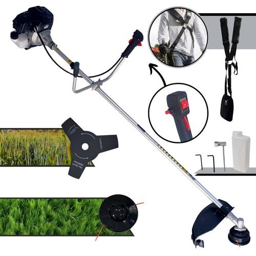 Com guidão ergonômico lateral, permite um alcance amplo e maior mobilidade, capaz de aumentar a produtividade diária. Possui motor 2 tempos á gasolina, de 43 Cilindradas, 10.000 de rotação 1,7HP de potência que proporcionam maior performance e economia na operação.Seu conjunto de acessórios inclui kit de ferramentas, cinto de suporte duplo almofadado, carretel de nylon e lâmina de corte 3 pontas.