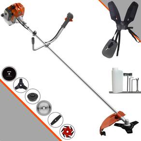 Com guidão ergonômico lateral, permite um alcance amplo e maior mobilidade, capaz de aumentar a produtividade diária. Possui motor 2 tempos á gasolina, de 42,7 Cilindradas (43cc) 9.000 de rotação 1,7HP de potência que proporcionam maior performance e economia na operação.Seu conjunto de acessórios inclui kit de ferramentas, cinto de suporte duplo almofadado, carretel de nylon e lâmina de corte 3 pontas.
