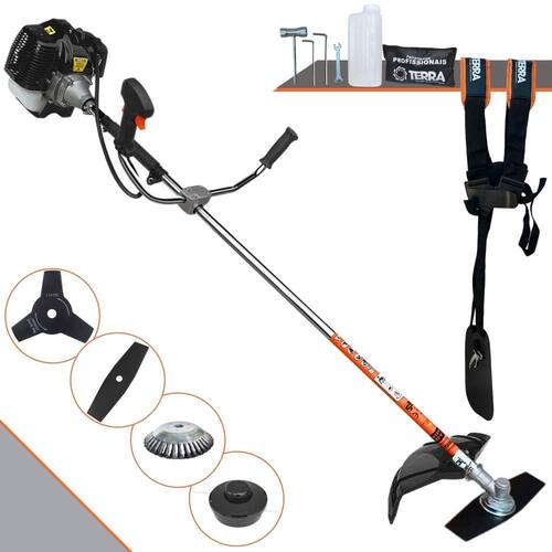 Roçadeira Lateral Terra GRH-520 Black À Gasolina2 Tempos 52cc 2,5HP +Faca 3 Pontas 255mm 2,9mm+Escova Rotativa 200mm 38 Cerdas