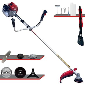 Com guidão ergonômico lateral, permite um alcance amplo e maior mobilidade, capaz de aumentar a produtividade diária. Possui motor 2 tempos á gasolina, de 43 Cilindradas; 1,7HP de potência que proporcionam maior performance e economia na operação. Seu conjunto de acessórios inclui kit de ferramentas, cinto de suporte almofadado, carretel de nylon e lâmina de corte 3 pontas.