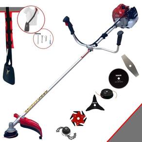 Com guidão ergonômico lateral, permite um alcance amplo e maior mobilidade, capaz de aumentar a produtividade diária. Possui motor 2 tempos á gasolina, de 52 Cilindradas; 2,5HP de potência que proporcionam maior performance e economia na operação. Seu conjunto de acessórios inclui kit de ferramentas, cinto de suporte almofadado, carretel de nylon e lâmina de corte 3 pontas.