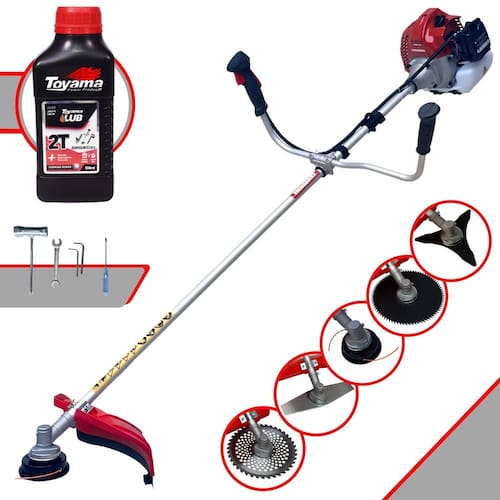 Com guidão ergonômico lateral, permite um alcance amplo e maior mobilidade, capaz de aumentar a produtividade diária. Possui motor 2 tempos á gasolina, de 52 Cilindradas; 2,5HP de potência que proporcionam maior performance e economia na operação. Seu conjunto de acessórios inclui kit de ferramentas, cinto de suporte almofadado, carretel de nylon e lâmina de corte 3 pontas.