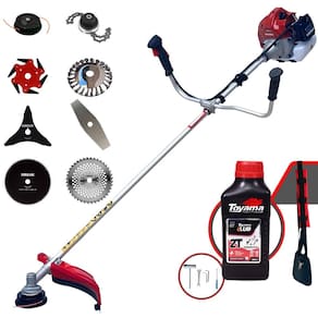 Roçadeira À Gasolina Kawashima BCJ 521L 52CC 2,5HP 2T + Faca 3 Pontas + Faca 40 Dentes + Faca 80 Dentes + Escova Rotativa 24 cerdas + Trimmer + Faca 6 Pontas + Óleo Toyama FG50 500ml