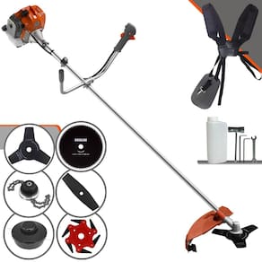 Com guidão ergonômico lateral, permite um alcance amplo e maior mobilidade, capaz de aumentar a produtividade diária. Possui motor 2 tempos á gasolina, de 42,7 Cilindradas (43cc) 9.000 de rotação 1,7HP de potência que proporcionam maior performance e economia na operação.Seu conjunto de acessórios inclui kit de ferramentas, cinto de suporte duplo almofadado, carretel de nylon e lâmina de corte 3 pontas.
