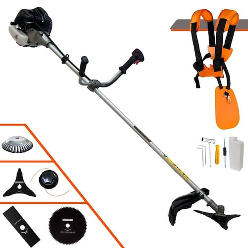 Roçadeira Lateral ANMAX CG430B À Gasolina 2 Tempos 43cc 1,7HP + Faca 3 Pontas 255mm + Faca 80 Dentes 255mm + Escova Rotativa 38 Cerdas