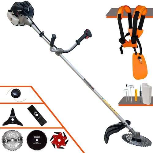 Roçadeira Lateral ANMAX CG430B À Gasolina 2 Tempos 43cc 1,7HP + Faca 3 Pontas 255m + Faca 40 Dentes 255mm + Faca 80 Dentes 255mm + Faca 6 Pontas 250mm