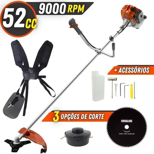 É uma roçadeira adpatável que pode se tornar multifuncional, podendo ser adaptado diversos modelos de acessórios, pois possui tubo de encaixe universal 28mm, e encaixe 25,4mm (1) para Lâminas e Facas, ampliando ainda a sua diversidade de cortes. Realizando o trabalho de forma ágil e confortável, com cinto duplo almofadado que acompanha o equipamento, proporcionando maior conforto, ergonomia e segurança ao operador. Com guidão ergonômico lateral, permite um alcance amplo e maior mobilidade, capaz de aumentar a produtividade diária. Possui motor 2 tempos á gasolina, de 51,6 Cilindradas (52cc) 9.000 de rotação 2,0 HP de potência que proporcionam maior performance e economia na operação.