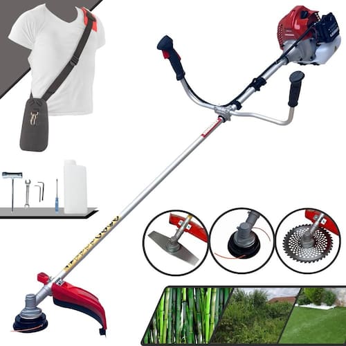 Com guidão ergonômico lateral, permite um alcance amplo e maior mobilidade, capaz de aumentar a produtividade diária. Possui motor 2 tempos á gasolina, de 43 Cilindradas; 1,7HP de potência que proporcionam maior performance e economia na operação. Seu conjunto de acessórios inclui kit de ferramentas, cinto de suporte almofadado, carretel de nylon e lâmina de corte 3 pontas.