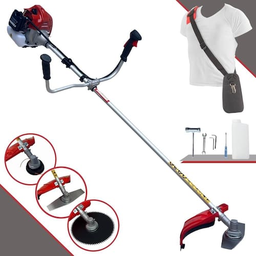 Com guidão ergonômico lateral, permite um alcance amplo e maior mobilidade, capaz de aumentar a produtividade diária. Possui motor 2 tempos á gasolina, de 43 Cilindradas; 1,7HP de potência que proporcionam maior performance e economia na operação. Seu conjunto de acessórios inclui kit de ferramentas, cinto de suporte almofadado, carretel de nylon e lâmina de corte 3 pontas.