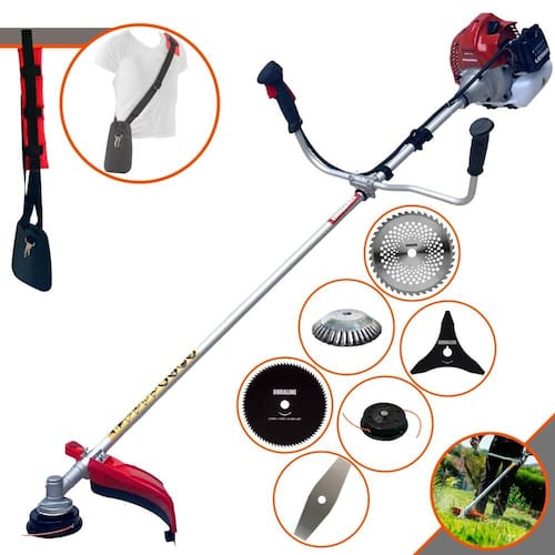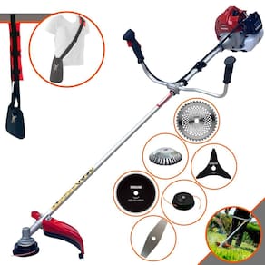 Com guidão ergonômico lateral, permite um alcance amplo e maior mobilidade, capaz de aumentar a produtividade diária. Possui motor 2 tempos á gasolina, de 43 Cilindradas; 1,7HP de potência que proporcionam maior performance e economia na operação. Seu conjunto de acessórios inclui kit de ferramentas, cinto de suporte almofadado, carretel de nylon e lâmina de corte 3 pontas.