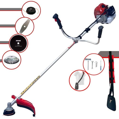 Com guidão ergonômico lateral, permite um alcance amplo e maior mobilidade, capaz de aumentar a produtividade diária. Possui motor 2 tempos á gasolina, de 43 Cilindradas; 1,7HP de potência que proporcionam maior performance e economia na operação. Seu conjunto de acessórios inclui kit de ferramentas, cinto de suporte almofadado, carretel de nylon e lâmina de corte 3 pontas.