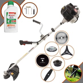 Roçadeira Profissional Kawashima KW43-LE À Gasolina 2T 43cc 1,7HP Com Lâmina 3 Pontas + Faca 2 Pontas 330mm 2,7mm+ Faca 40 Dentes 255mm 2mm + Faca 80 Dentes 255mm 1,5mm + Escova Rotativa 38 Cerdas 200mm + Óleo CASTROL STIHL 500ml 2 Tempos