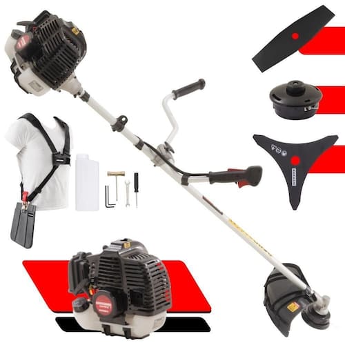 Roçadeira Profissional Lateral Kawashima KW43-LE À Gasolina 2T 43cc 1,7HP Com Lâmina 3 Pontas + Faca 2 Pontas 330mm