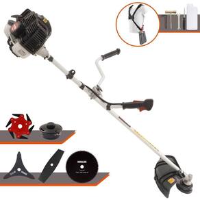 Roçadeira Profissional Kawashima KW43-LE À Gasolina 2T 43cc 1,7HP Com Lâmina 3 Pontas + Faca 2 Pontas 330mm 2,7mm + Faca 80 Dentes 255mm 1,5mm + Faca 6 Pontas 250mm