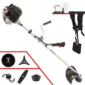 Roçadeira Profissional Kawashima KW43-LE À Gasolina 2T 43cc 1,7HP Com Lâmina 3 Pontas + Faca 2 Pontas 330mm 2,7mm + Faca 80 Dentes 255mm 1,5mm + Trimmer