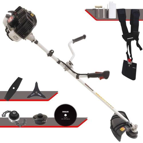 Roçadeira Profissional Kawashima KW43-LE À Gasolina 2T 43cc 1,7HP Com Lâmina 3 Pontas + Faca 2 Pontas 330mm 2,7mm + Faca 80 Dentes 255mm 1,5mm + Trimmer