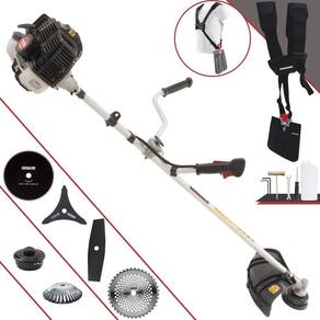Roçadeira Profissional Kawashima KW43-LE À Gasolina 2T 43cc 1,7HP Com Lâmina 3 Pontas + Faca 2 Pontas 330mm 2,7mm+ Faca 40 Dentes 255mm 2mm + Faca 80 Dentes 255mm 1,5mm + Escova Rotativa 38 Cerdas 200mm