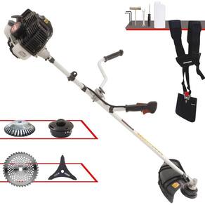 Roçadeira Profissional Kawashima KW43-LE À Gasolina 2T 43cc 1,7HP Com Lâmina 3 Pontas + Faca 40 Dentes 255mm 2mm + Escova Rotativa 38 Cerdas 200mm