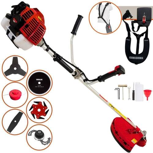 Roçadeira Profissional Lateral Kawashima KW52-L À Gasolina 2T 52c 2,5HP Com Lâmina 3 Pontas + Faca 2 Pontas 330mm + Faca 80 Dentes 255mm + Trimmer + Faca 6 Pontas 250mm