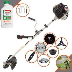 Roçadeira Profissional Kawashima KW52LE À Gasolina 2T 52c 2,5HP Com Lâmina 3 Pontas + Faca 2 Pontas 330mm 2,7mm + Faca 40 Dentes 255mm 2mm + Faca 80 Dentes 255mm 1,5mm + Escova Rotativa 38 Cerdas 200mm + Óleo CASTROL STIHL 500ml 2 Tempos
