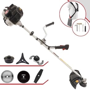 Roçadeira Profissional Kawashima KW52-LE À Gasolina 2T 52cc 2,5HP Com Lâmina 3 Pontas + Faca 2 Pontas 330mm 2,7mm + Faca 40 Dentes 255mm 2mm + Faca 80 Dentes 255mm 1,5mm + Trimmer