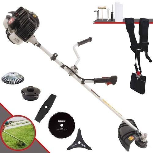Roçadeira Profissional Kawashima KW52-LE À Gasolina 2T 52c 2,5HP Com Lâmina 3 Pontas + Faca 2 Pontas 330mm 2,7mm + Faca 80 Dentes 255mm 1,5mm + Escova Rotativa 38 Cerdas 200mm