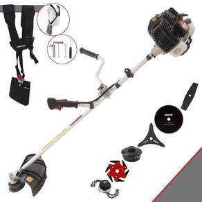Roçadeira Profissional Kawashima KW52-LE À Gasolina 2T 52c 2,5HP Com Lâmina 3 Pontas + Faca 2 Pontas 330mm 2,7mm + Faca 80 Dentes 255mm 1,5mm + Trimmer + Faca 6 Pontas 250mm