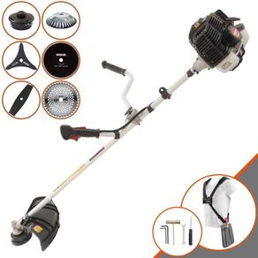 Roçadeira Profissional Kawashima KW52LE À Gasolina 2T 52c 2,5HP Com Lâmina 3 Pontas + Faca 2 Pontas 330mm 2,7mm + Faca 40 Dentes 255mm 2mm + Faca 80 Dentes 255mm 1,5mm + Escova Rotativa 38 Cerdas 200mm