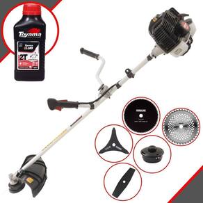 Roçadeira Profissional Kawashima KW52-LE À Gasolina 2T 52cc 2,5HP Com Lâmina 3 Pontas + Faca 2 Pontas 330mm 2,7mm + Faca 40 Dentes 255mm 2mm + Faca 80 Dentes 255mm 1,5mm + Óleo TOYAMA LUB FG50 500ml 2T