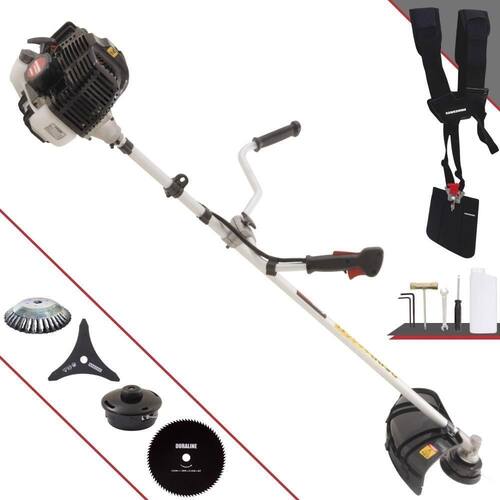 Roçadeira Profissional Kawashima KW52-LE À Gasolina 2T 52c 2,5HP Com Lâmina 3 Pontas + Faca 80 Dentes 255mm 1,5mm + Escova Rotativa 38 Cerdas 200mm