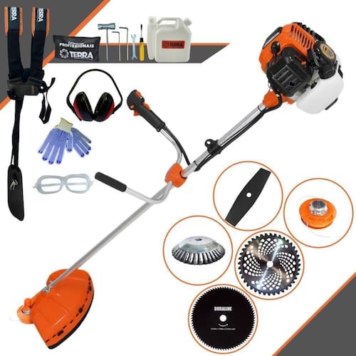Marca: Terra | Com sistema antivibração: Sim | Modelo: GR520XP2P80D38C | Motivo de GTIN vazio: O produto é um kit ou pack | Capacidade do tanque de Óleo: N/A | Fonte do produto: N/A | Tipo de guiador: Aberto | Com regulação de guiador: Sim | Sistema de partida: Manual | Comprimento total: 188cm | Com guarda de segurança: Sim | Capacidade do tanque de combustível: 1200ml | MPN: 83678900 | Diâmetro de corte do disco de corte: 255mm | Largura total: 50cm | Tempos do motor: 2 | Eixo de transmissão: Reto | Peso: 12Kg | Tipos de máquinas: Roçadeira | Potência do motor: 2,5HP | Cilindrada: 52cc | Tipo de eixo da máquina: Reto | Sistemas de corte: Lâmina e Carretel de Nylon | Diâmetro de corte da tanza: 255mm | SKU: GR520XP2P80D38C | Acessórios incluídos: Lâmina, Carretel de Nylon, Kit de chaves, Misturador de Combustível e Cinto de Sustentação | Condição do item: Novo | Código universal de produto: 0703878026522 | É kit: Sim | Selo SEC: N/A