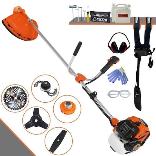 Marca: Terra | Com sistema antivibração: Não | Selo SEC: N/A | Modelo: GR520XP2P3PTM | Motivo de GTIN vazio: O produto é um kit ou pack | Capacidade do tanque de Óleo: N/A | Fonte do produto: N/A | Tipo de guiador: Aberto | Com regulação de guiador: Sim | Sistema de partida: Manual | Comprimento total: 188cm | Com guarda de segurança: Sim | Capacidade do tanque de combustível: 1,2L | MPN: 84678900 | Diâmetro de corte do disco de corte: 255mm | Largura total: 40cm | Tempos do motor: 2 | Eixo de transmissão: Rígido | Peso: 12kg | Tipos de máquinas: Roçadeira | Potência do motor: 2,5HP | Cilindrada: 52cc | Tipo de eixo da máquina: Reto | Diâmetro de corte da tanza: 255mm | Sistemas de corte: Lâmina e Carretel de Nylon | SKU: GR520XP2P3PTM | Acessórios incluídos: Kit ferramentas, cinto de sustentação, misturador de combustível | Condição do item: Novo | Código universal de produto: 0703363316022 | É kit: Sim