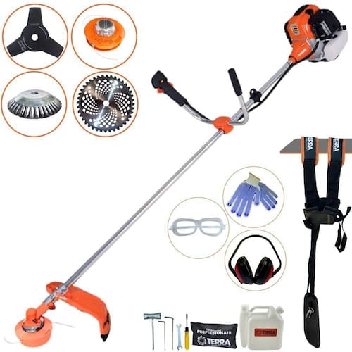 Marca: Terra | Com sistema antivibração: Sim | Modelo: GR520XP3P38C | Motivo de GTIN vazio: O produto é um kit ou pack | Capacidade do tanque de Óleo: N/A | Fonte do produto: N/A | Tipo de guiador: Aberto | Com regulação de guiador: Sim | Sistema de partida: Manual | Comprimento total: 188cm | Com guarda de segurança: Sim | Capacidade do tanque de combustível: 1200ml | MPN: 83678900 | Diâmetro de corte do disco de corte: 255mm | Largura total: 50cm | Tempos do motor: 2 | Eixo de transmissão: Reto | Peso: 12Kg | Tipos de máquinas: Roçadeira | Potência do motor: 2,5HP | Cilindrada: 52cc | Tipo de eixo da máquina: Reto | Sistemas de corte: Lâmina e Carretel de Nylon | Diâmetro de corte da tanza: 255mm | SKU: GR520XP3P38C | Acessórios incluídos: Lâmina, Carretel de Nylon, Kit de chaves, Misturador de Combustível e Cinto de Sustentação | Condição do item: Novo | Código universal de produto: 0703878026508 | É kit: Sim | Selo SEC: N/A