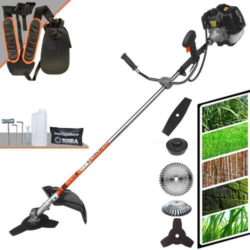 Roçadeira Profissional Lateral Terra GRH-430 Black À Gasolina 2 Tempos 43cc 1,7HP + Faca 2 Pontas 330mm 2,7mm + Faca 40 Dentes 255mm 2mm + Escova Rotativa 200mm 38 Cerdas