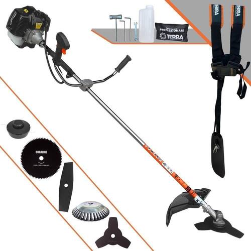 Roçadeira Profissional Lateral Terra GRH-430 Black À Gasolina 2 Tempos 43cc 1,7HP + Faca 2 Pontas 330mm 2,7mm + Faca 80 Dentes 255mm 1,5mm + Escova Rotativa 200mm 38 Cerdas