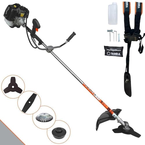 Marca: Terra | Com sistema antivibração: Não | Modelo: GRH4302P38C | Motivo de GTIN vazio: O produto é um kit ou pack | Capacidade do tanque de Óleo: N/A | Tipo de guiador: Aberto | Fonte do produto: N/A | Com regulação de guiador: Sim | Sistema de partida: Manual | Comprimento total: 188cm | Com guarda de segurança: Sim | MPN: 84678900 | Capacidade do tanque de combustível: 1,0L | Diâmetro de corte do disco de corte: 255mm | Largura total: 40cm | Tempos do motor: 2 | Eixo de transmissão: Reto | Peso: 12kg | Tipos de máquinas: Roçadeira | Potência do motor: 1,7HP | Cilindrada: 43cc | Tipo de eixo da máquina: Reto | Diâmetro de corte da tanza: 255mm | Sistemas de corte: Faca e Carretel de Nylon | SKU: GRH4302P38C | Acessórios incluídos: Kit ferramentas, cinto de sustentação, misturador de combustível | Condição do item: Novo | Código universal de produto: 0703878009938 | É kit: Sim | Selo SEC: N/A